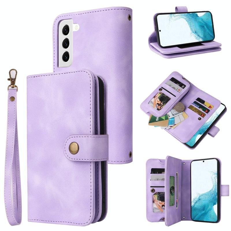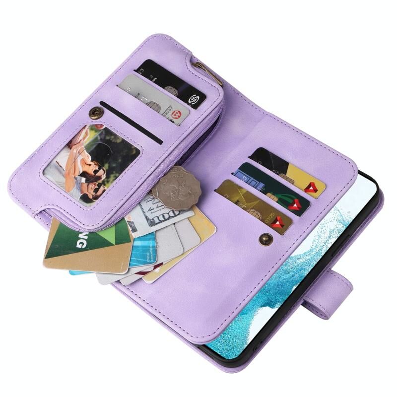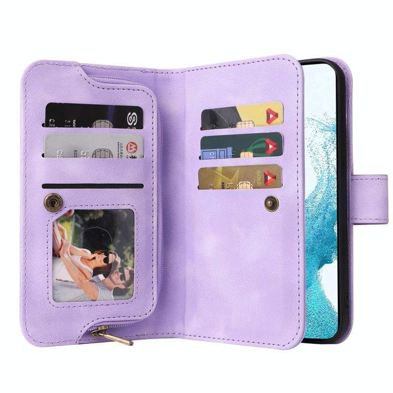 Για Samsung Galaxy S21 FE 5G Πολυλειτουργική κάρτα Slot φερμουάρ πορτοφόλι δερμάτινη θήκη τηλεφώνου (μωβ)