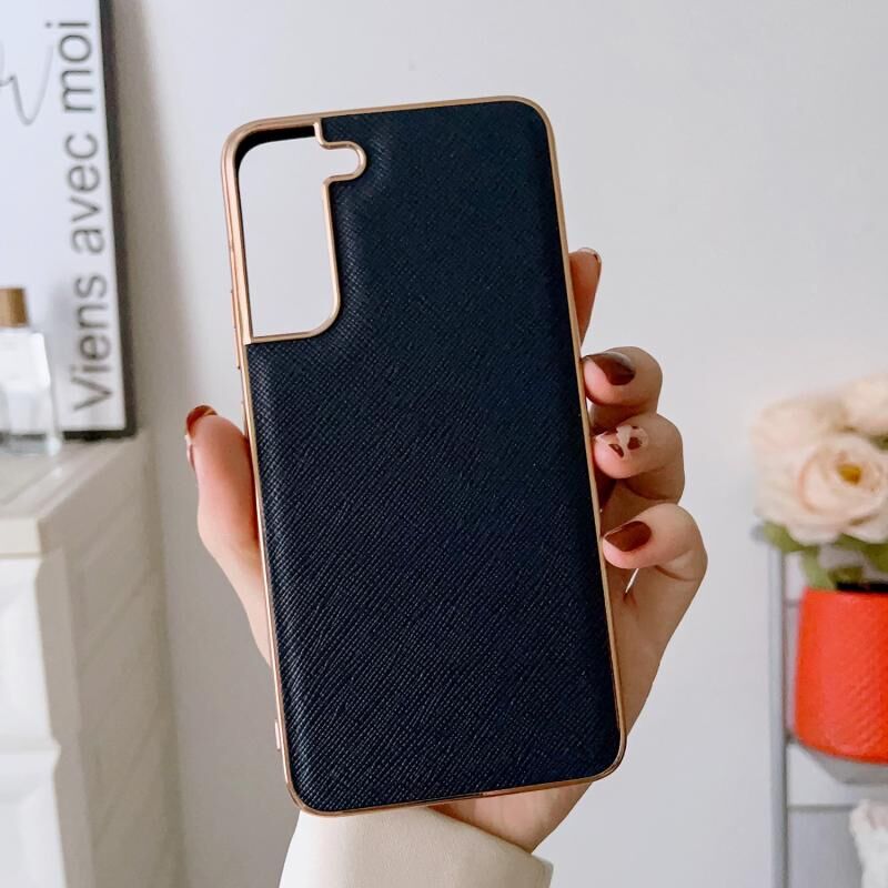 Θήκη τηλεφώνου από γνήσιο δέρμα με σταυρωτή υφή και νανο-επίχρυση για Samsung Galaxy S21 FE 5G (Μπλε)