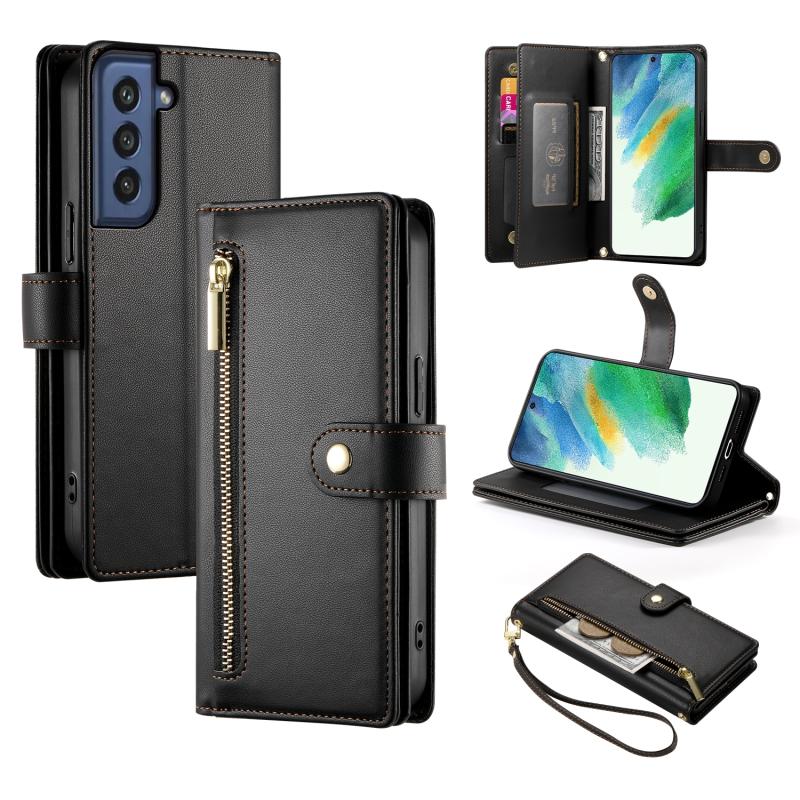 For Samsung Galaxy S21 FE 5G Nine Card-slot Zipper Wallet Bag Leather Phone Case(Black)