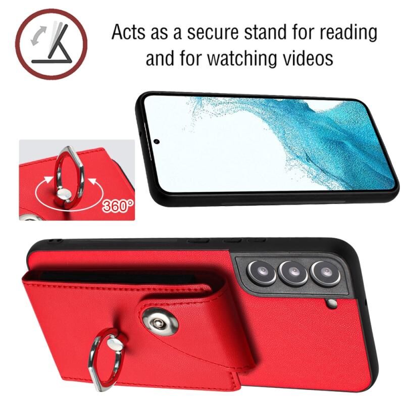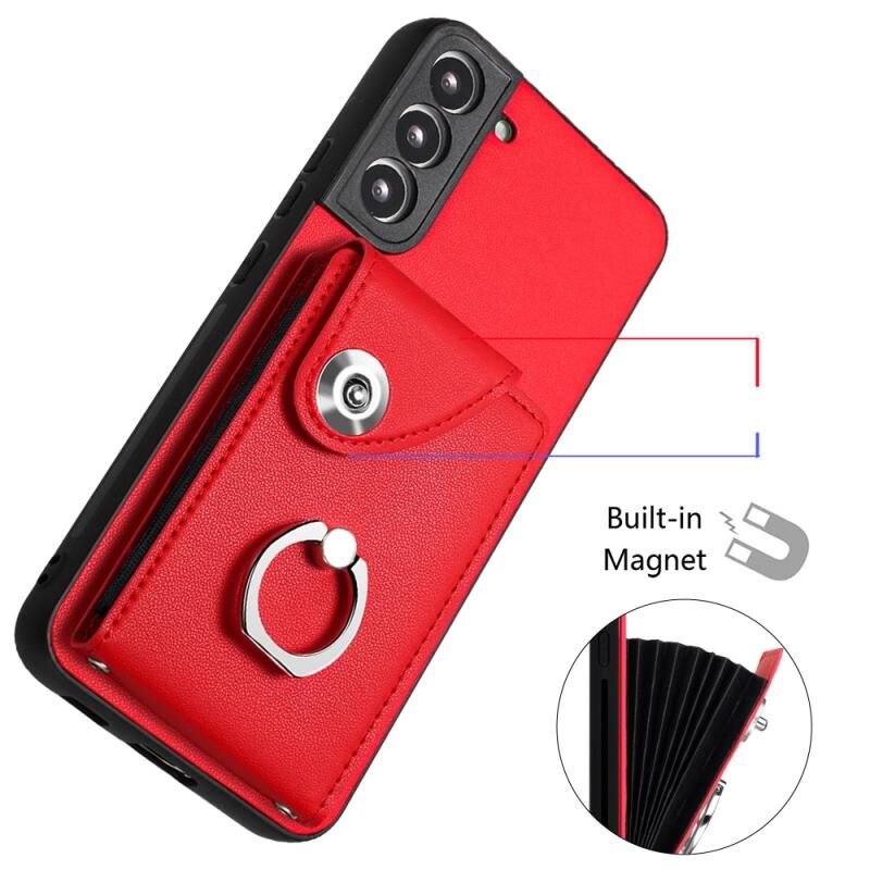 Για Samsung Galaxy S21 FE 5G Οργανική κάρτα τσάντα τσάντα δαχτυλίδι κάτοχος θήκη τηλεφώνου με μακρύ κορδόνι (κόκκινο)