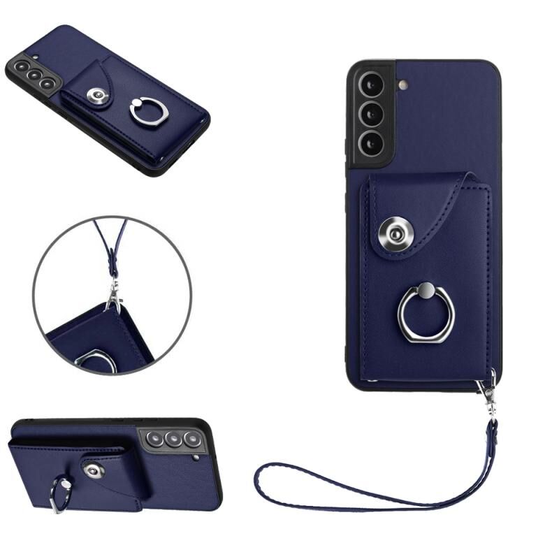 Για Samsung Galaxy S21 FE 5G Οργάνου κάρτα τσάντα δαχτυλίδι κάτοχος PU θήκη τηλεφώνου με κορδόνι (μπλε)