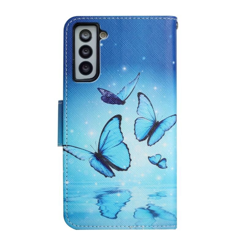 Θήκη δέρματος οριζόντιας αναδίπλωσης με σχέδιο ζωγραφικής για Samsung Galaxy S21 FE 5G με βάση & υποδοχή κάρτας & πορτοφόλι (Πεταλούδα που πετάει)