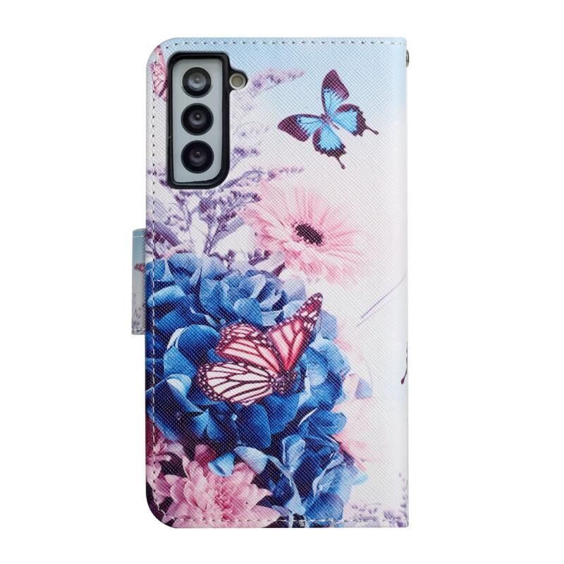 Θήκη δέρματος οριζόντιας αναδίπλωσης με σχέδιο ζωγραφικής για Samsung Galaxy S21 FE 5G με βάση & υποδοχή κάρτας & πορτοφόλι (Κόκκινο Λουλούδι)