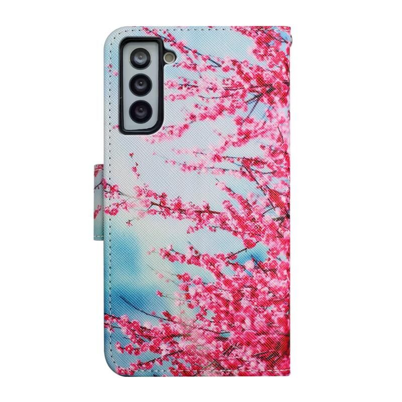 Θήκη δέρματος οριζόντιας αναδίπλωσης με σχέδιο ζωγραφικής για Samsung Galaxy S21 FE 5G με βάση & υποδοχή κάρτας & πορτοφόλι (Κόκκινο Λουλούδι)