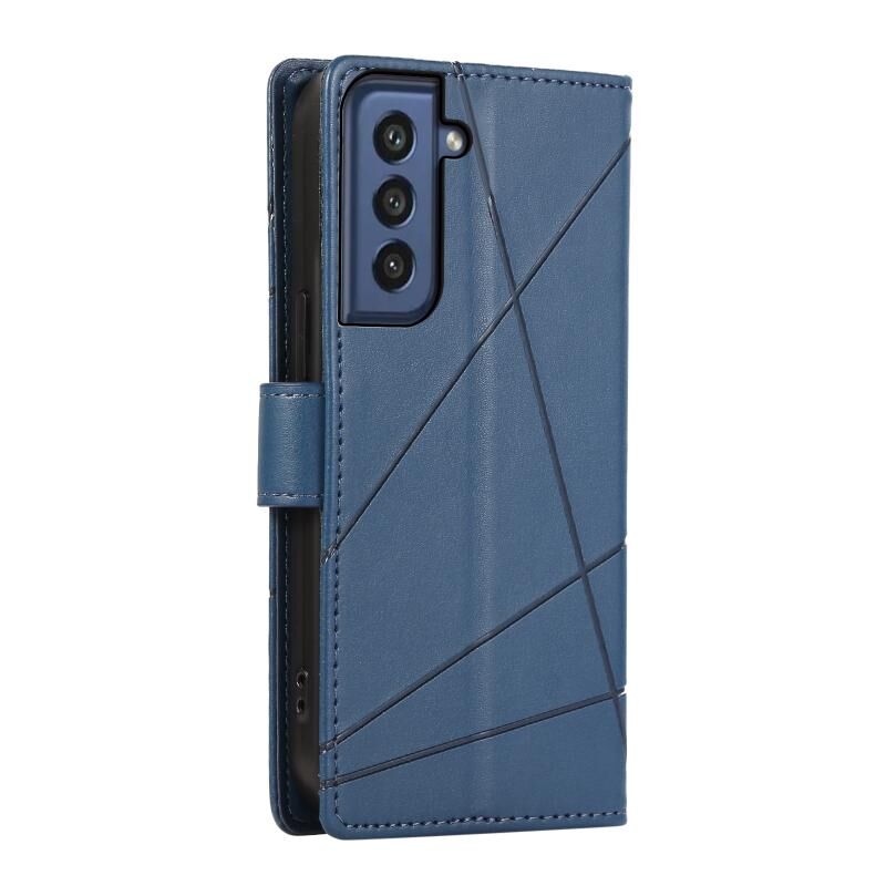 Θήκη τηλεφώνου για Samsung Galaxy S21 FE 5G από γνήσιο δέρμα PU με ανάγλυφη υφή και λεπτομέρειες γραμμής (Μπλε)