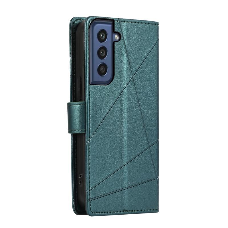 Θήκη τηλεφώνου για Samsung Galaxy S21 FE 5G από γνήσιο δέρμα PU με ανάγλυφη υφή και λεπτομέρειες γραμμής (Μπλε)