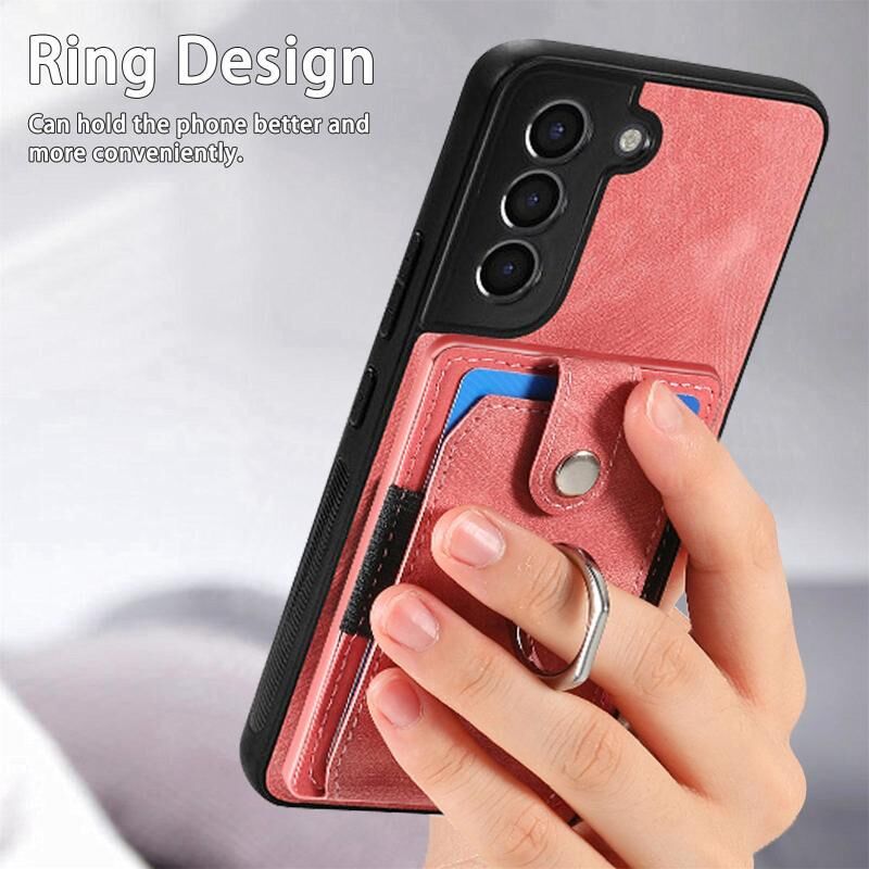 Για Samsung Galaxy S21 FE 5G Retro Skin-feel Ring Card Wallet υπόθεση τηλεφώνου (μπλε)