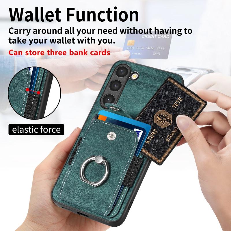 For Samsung Galaxy S21 FE 5G Retro Skin-feel Ring Card Wallet Phone Case(Green)
