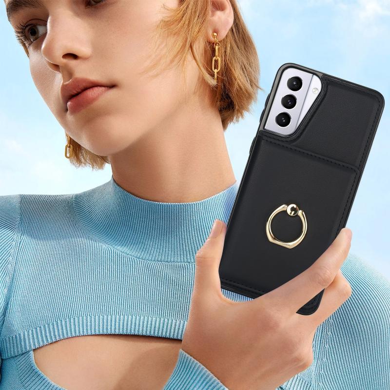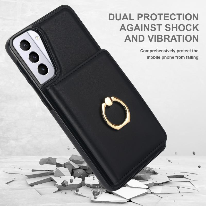 For Samsung Galaxy S21 FE 5G RFID Anti-theft Card Ring Holder Phone Case(Black)
