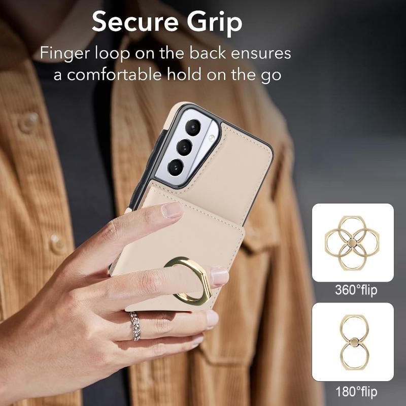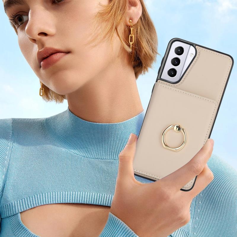 For Samsung Galaxy S21 FE 5G RFID Anti-theft Card Ring Holder Phone Case(White)
