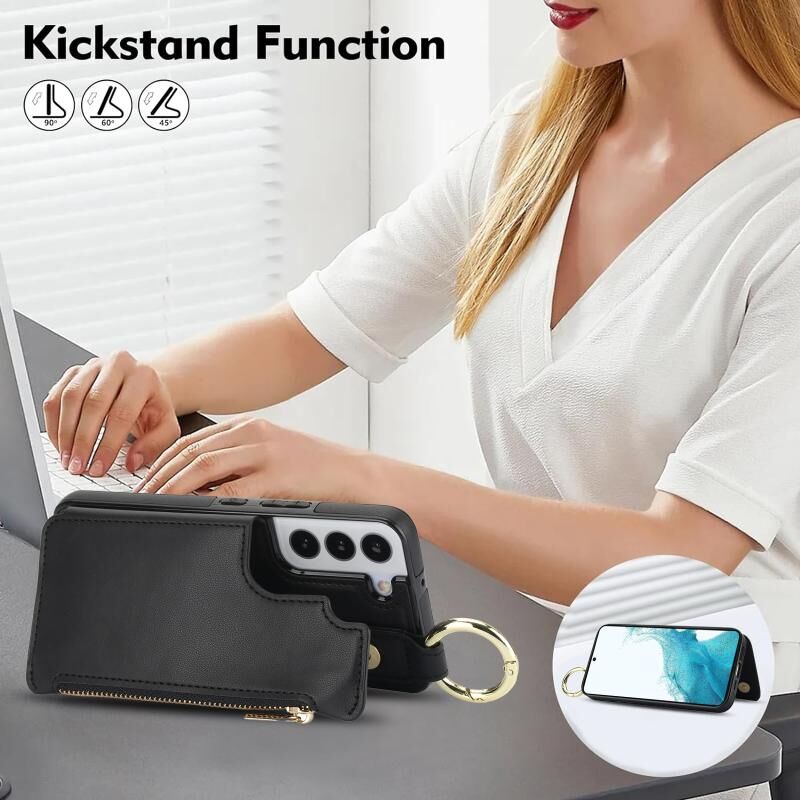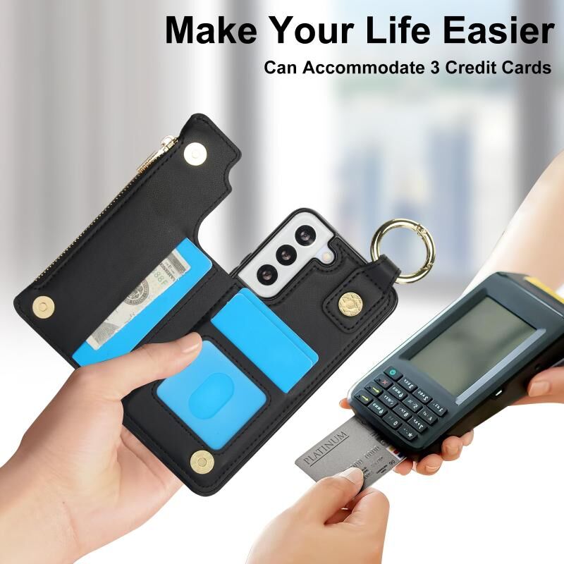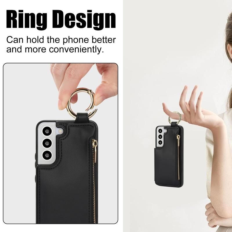 Για Samsung Galaxy S21 FE 5G RFlD RFlD Anti-theft Διπλό πόρπη δαχτυλίδι φερμουάρ κάρτα τηλέφωνο υπόθεση (μαύρο)
