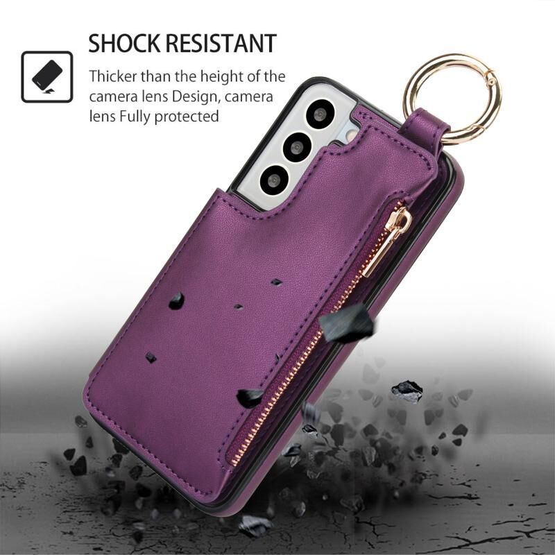 Για Samsung Galaxy S21 FE 5G RFlD Anti-theft Διπλό πόρπη δαχτυλίδι φερμουάρ τηλέφωνο υπόθεση κάρτα (σκούρο μωβ)