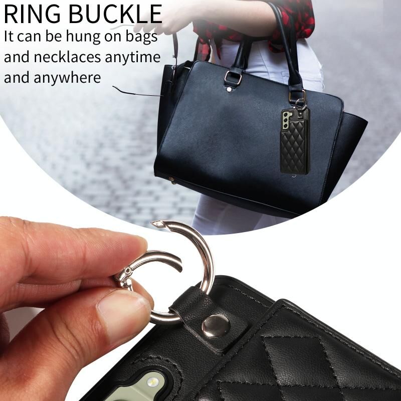 Για Samsung Galaxy S21 FE 5G Rhombic υφή κάρτα τσάντα θήκη τηλεφώνου με σύντομο κορδόνι (Μαύρο)