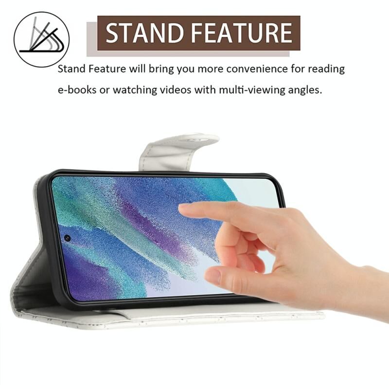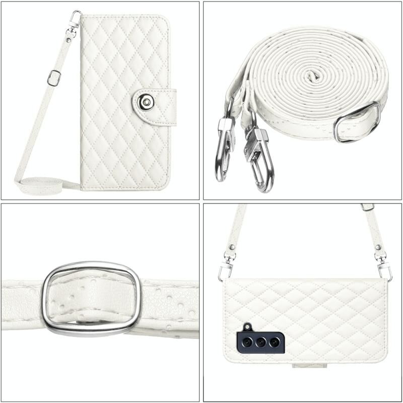 Για Samsung Galaxy S21 FE 5G Rhombic υφή Flip δερμάτινη θήκη τηλεφώνου με μακρύ κορδόνι (λευκό)