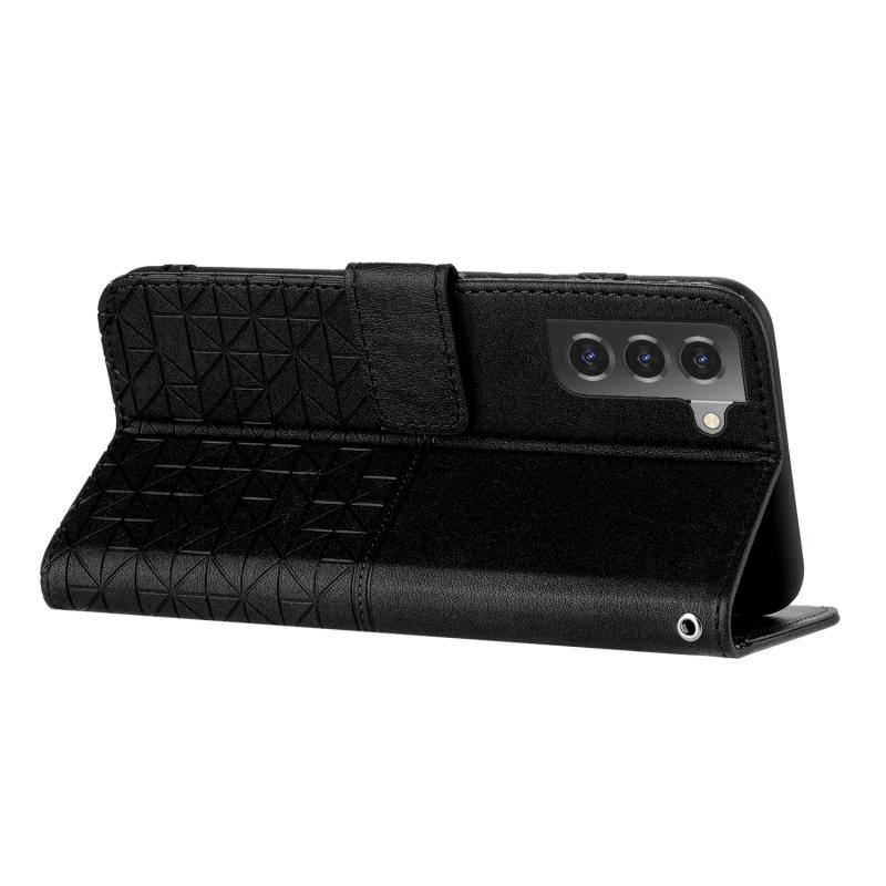 For Samsung Galaxy S21 FE 5G Rhombic Texture Leather Phone Case with Lanyard(Black)