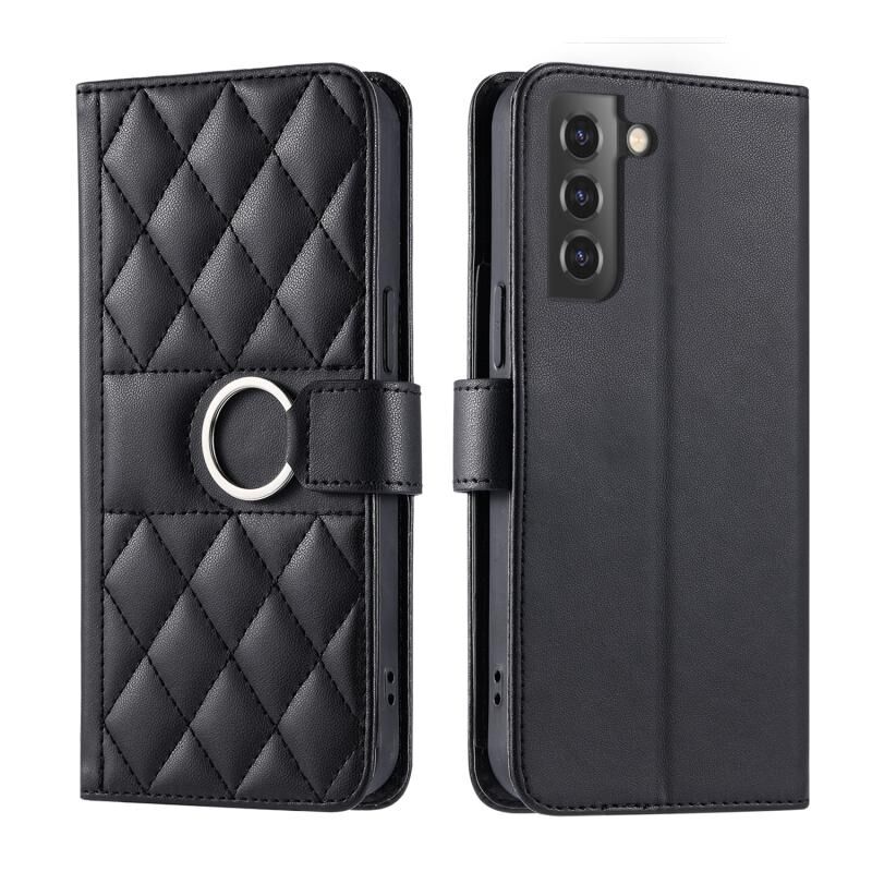 For Samsung Galaxy S21 FE 5G Ring Buckle Rhombic Leather Phone Case(Black)