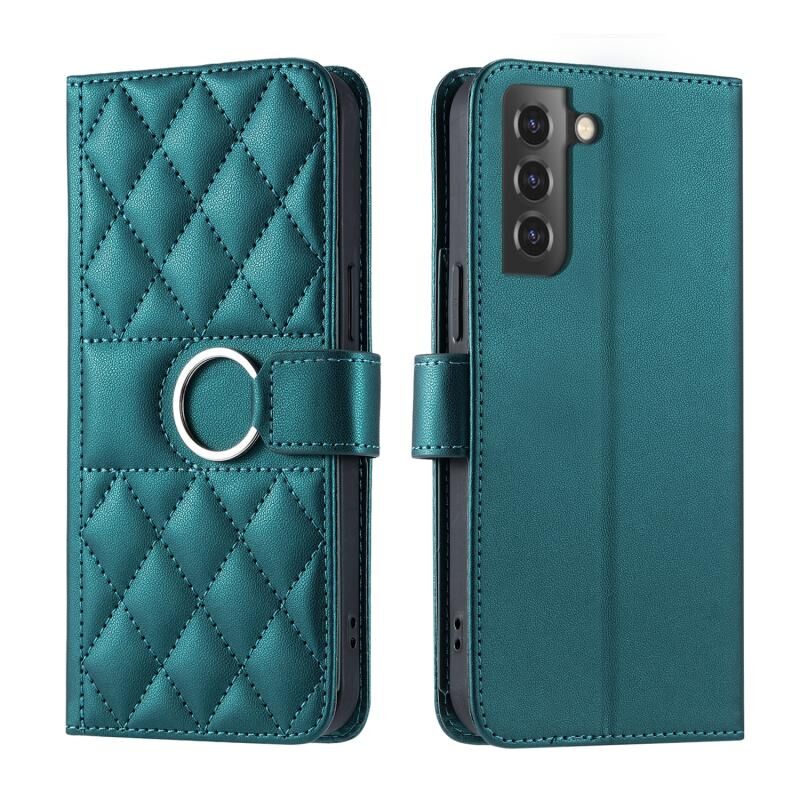 For Samsung Galaxy S21 FE 5G Ring Buckle Rhombic Leather Phone Case(Green)