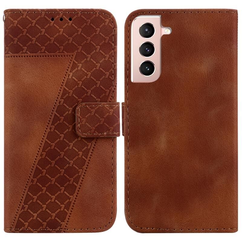 Θήκη τηλεφώνου από ανάγλυφο δέρμα σε σχήμα επτά για Samsung Galaxy S21 FE 5G (Καφέ)
