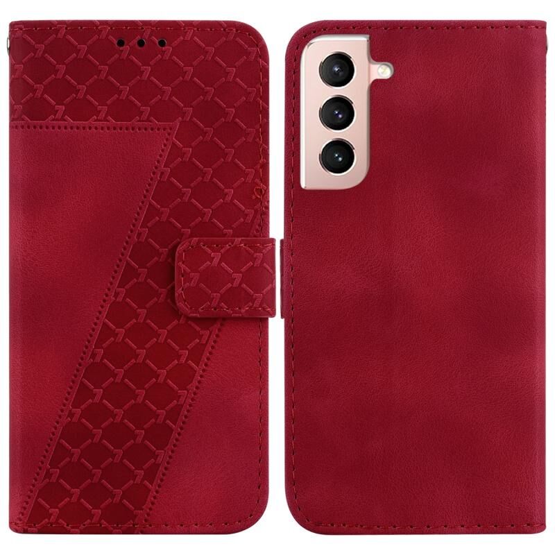 Θήκη τηλεφώνου από ανάγλυφο δέρμα σε σχήμα επτά για Samsung Galaxy S21 FE 5G (Κόκκινο)