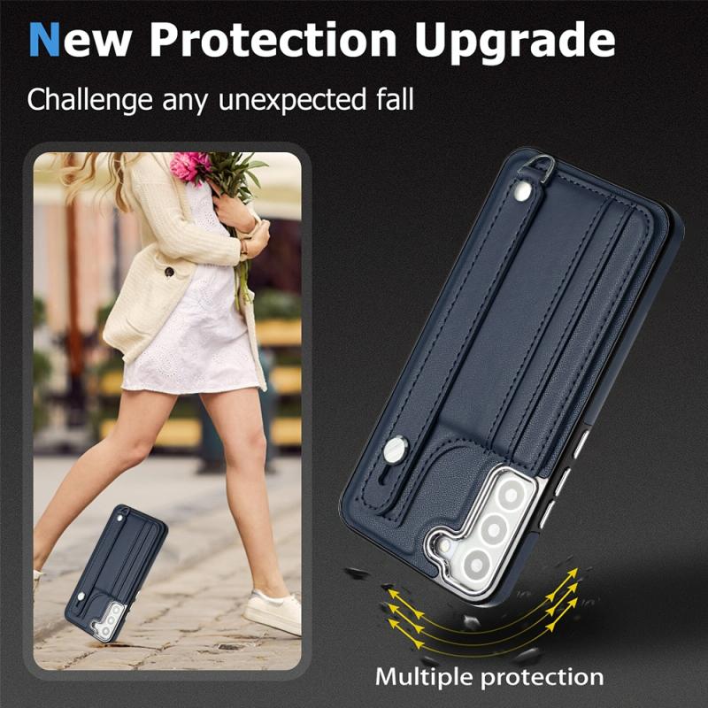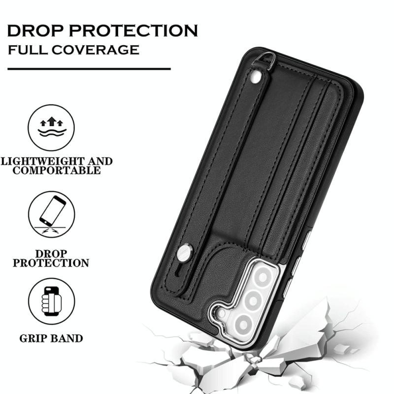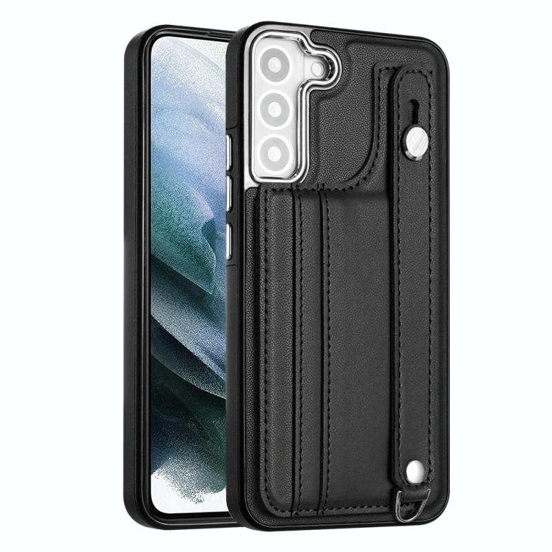 Θήκη κινητού Samsung Galaxy S21 FE 5G από δέρμα, ανθεκτική στις κρούσεις, με λουρί καρπού (Μαύρο)