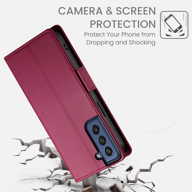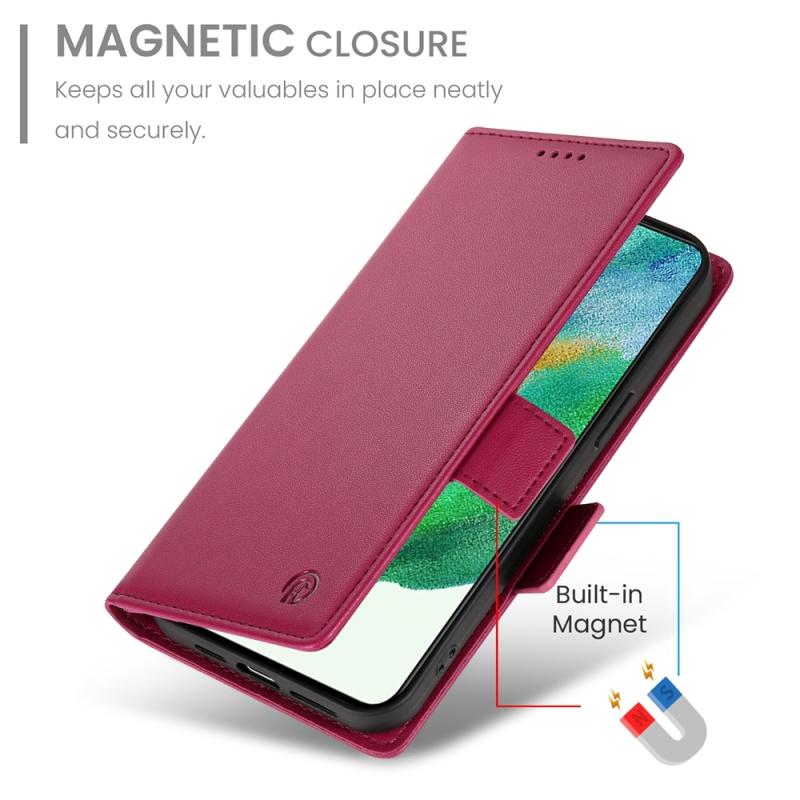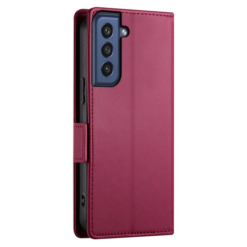For Samsung Galaxy S21 FE 5G Side Buckle Magnetic Frosted Leather Phone Case(Wine Red)