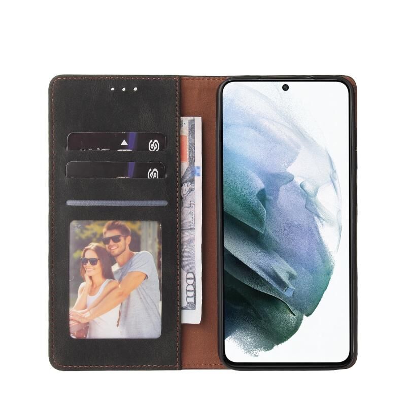 Για Samsung Galaxy S21 FE 5G Απλή θήκη οριζόντια αναδιπλούμενη δερμάτινη θήκη με υποδοχή για κάρτες και πορτοφόλι (Μαύρο)