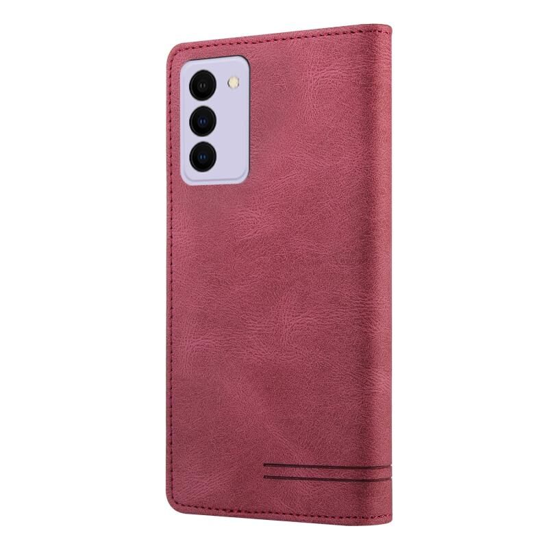 Για Samsung Galaxy S21 FE 5G Skin Feel Anti-theft Brush Οριζόντια Flip δερμάτινη θήκη με θήκη & υποδοχές για κάρτες & πορτοφόλι (κόκκινο κρασί)