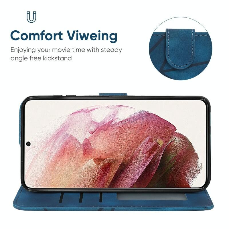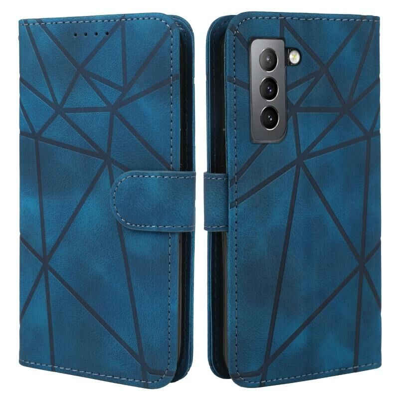 Θήκη τηλεφώνου Samsung Galaxy S21 FE 5G από δέρμα με γεωμετρικά σχέδια και αίσθηση δέρματος (Μαύρο)