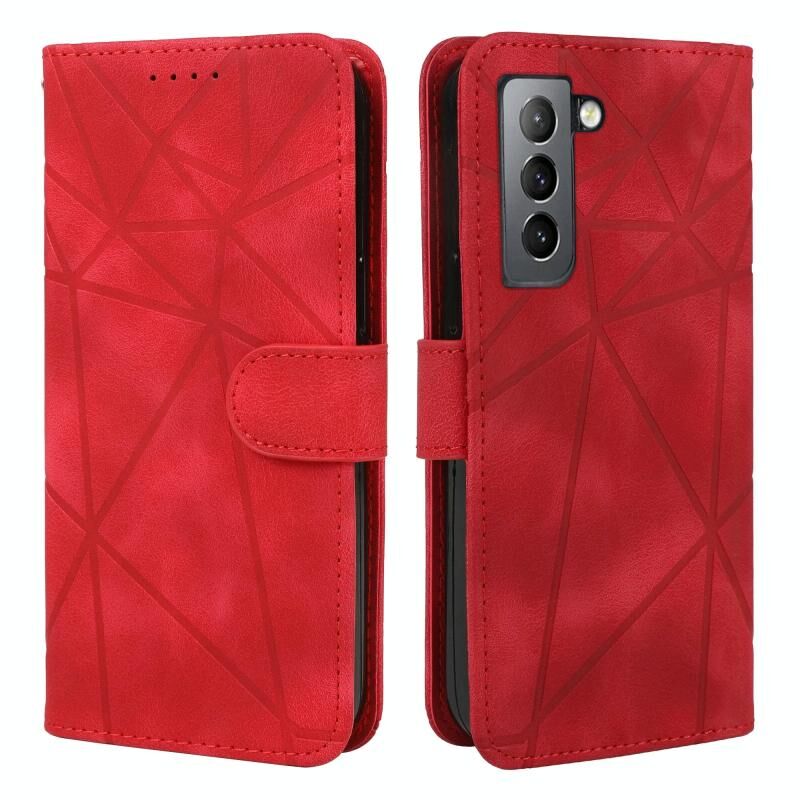Θήκη τηλεφώνου Samsung Galaxy S21 FE 5G από δέρμα με γεωμετρικά σχέδια και αίσθηση δέρματος (Μαύρο)
