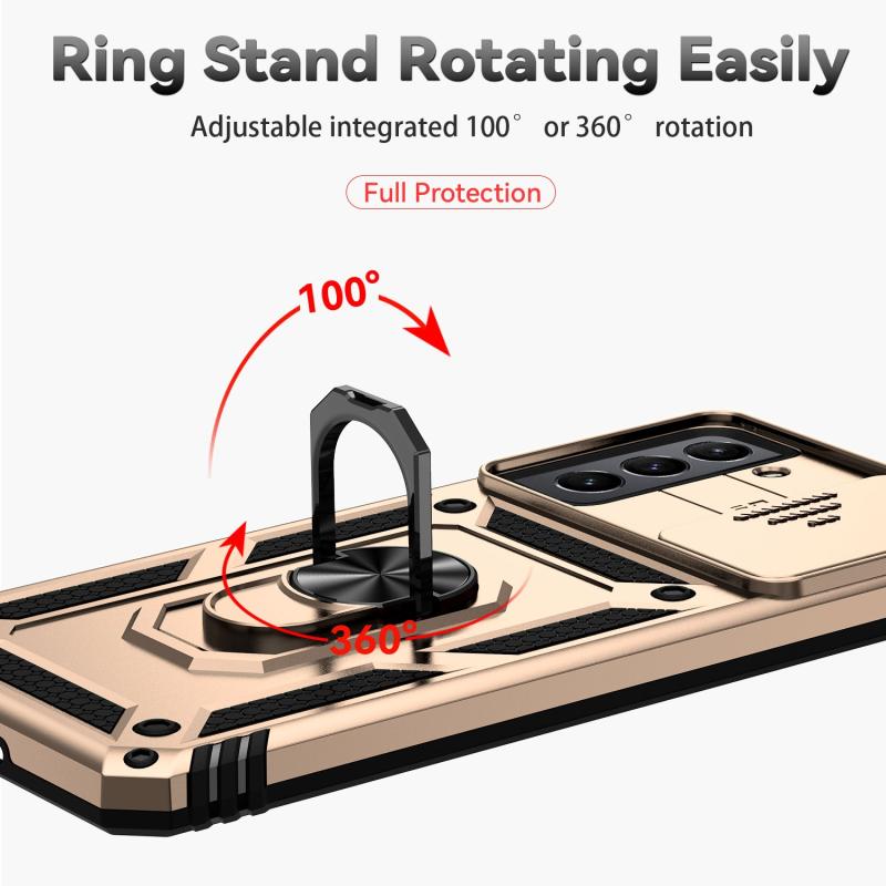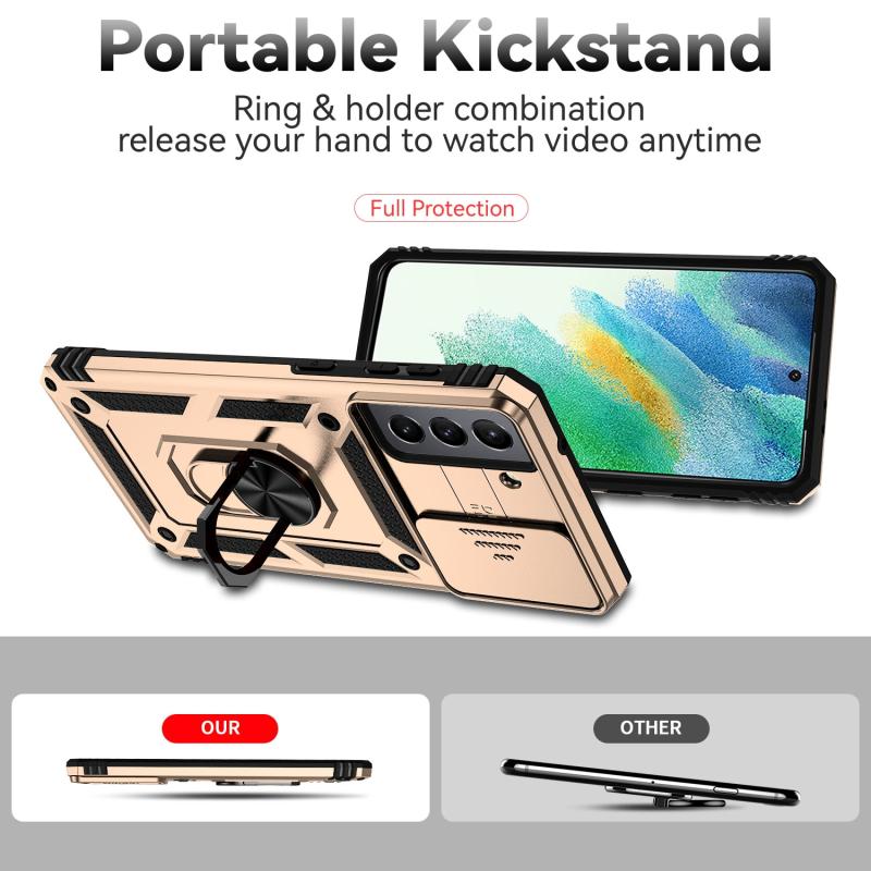 For Samsung Galaxy S21 FE 5G Sliding Camshield Holder Phone Case(Gold)