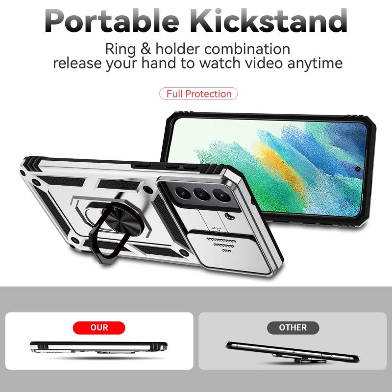 Θήκη κινητού τηλεφώνου με συρόμενο προστατευτικό φακού Camshield για Samsung Galaxy S21 FE 5G (Ασημί)