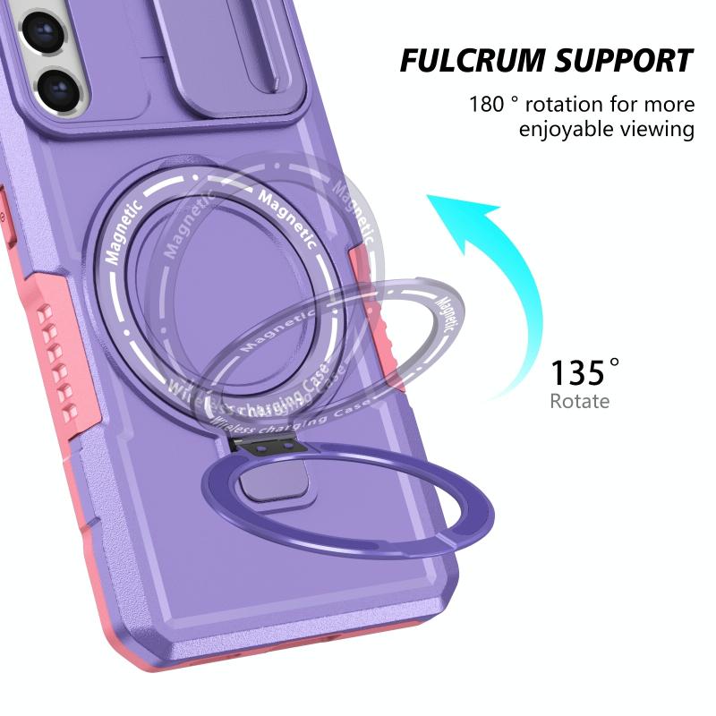 For Samsung Galaxy S21 FE 5G Sliding Camshield Magsafe Holder TPU Hybrid PC Phone Case(Pink Purple)