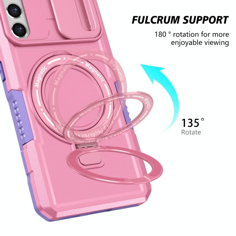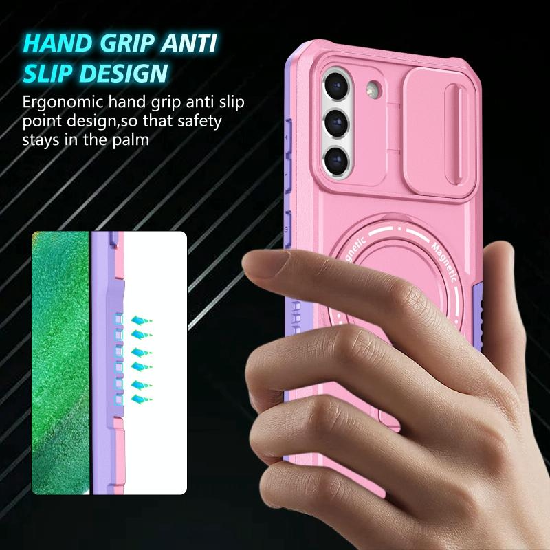 For Samsung Galaxy S21 FE 5G Sliding Camshield Magsafe Holder TPU Hybrid PC Phone Case(Purple Pink)