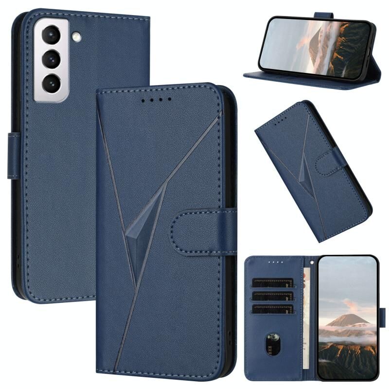 Για Samsung Galaxy S21 FE 5G Τρίγωνο μοτίβο αγκράφα κούμπωμα δερμάτινη θήκη τηλεφώνου (Βασιλικό μπλε)