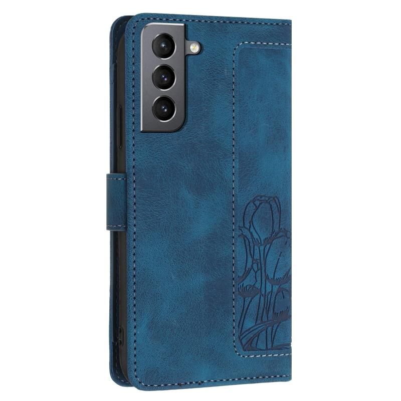 Θήκη τηλεφώνου Samsung Galaxy S21 FE 5G με ανάγλυφο δέρμα και λουλούδια τουλίπας με κορδόνι (Κόκκινο)