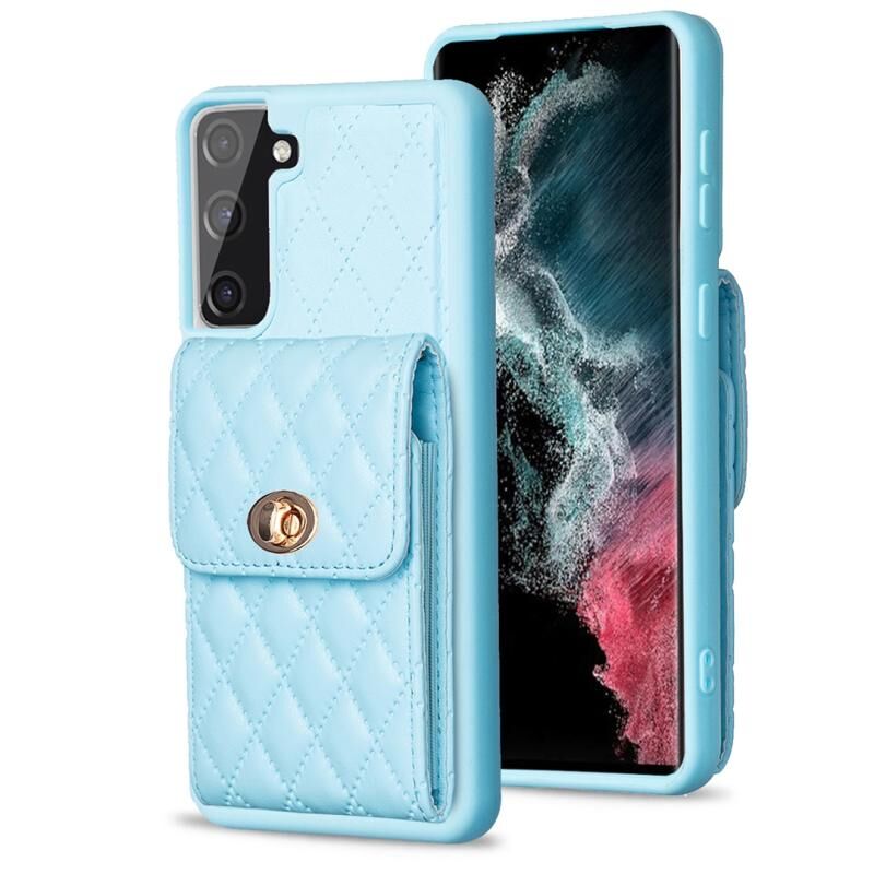 Για Samsung Galaxy S21 FE 5G Κάθετη πορτοφόλι ρομβοειδή δερμάτινη θήκη τηλεφώνου (Μπλε)