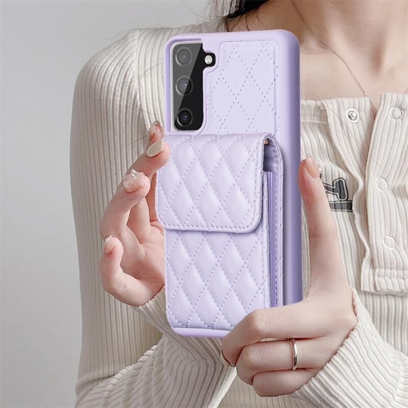 Για Samsung Galaxy S21 FE 5G Κάθετη πορτοφόλι ρομβοειδή δερμάτινη θήκη τηλεφώνου (μωβ)