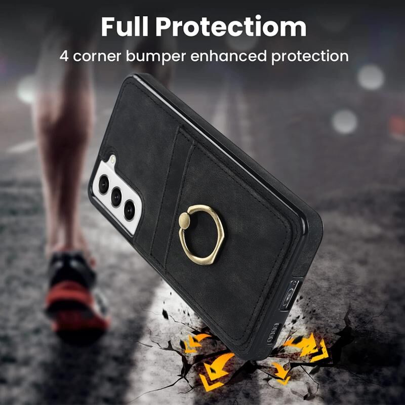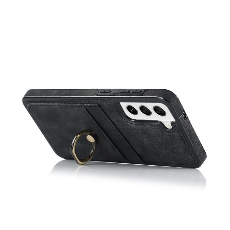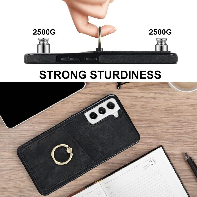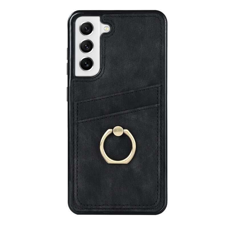 Για Samsung Galaxy S21 FE 5G Vintage Patch δερμάτινη θήκη τηλεφώνου με θήκη δαχτυλιδιού (Μαύρο)