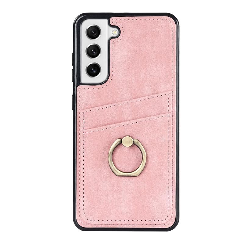 Για Samsung Galaxy S21 FE 5G Vintage Patch δερμάτινη θήκη τηλεφώνου με θήκη δαχτυλιδιού (ρόζ)