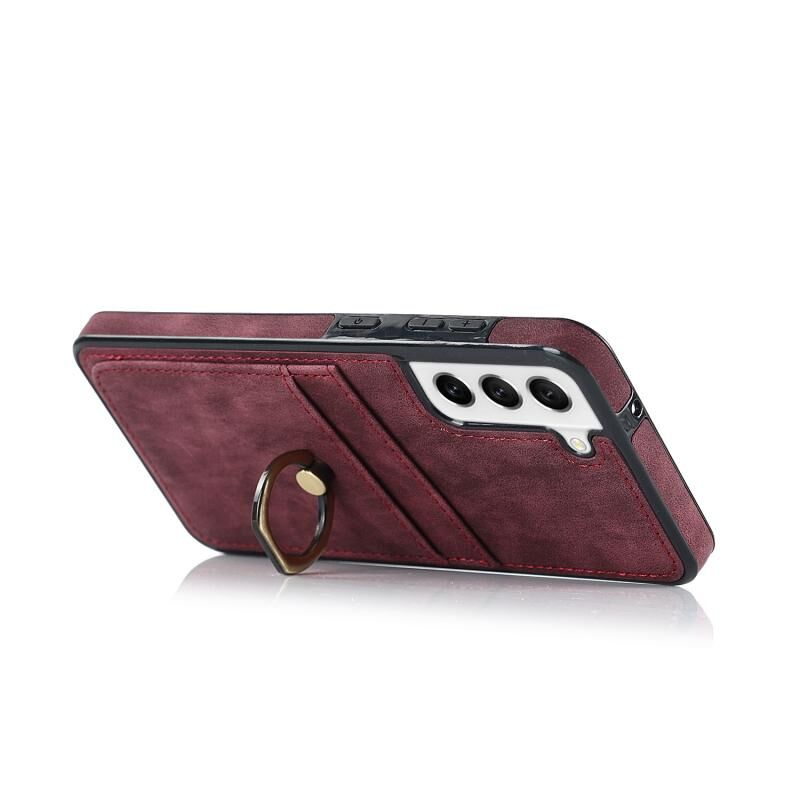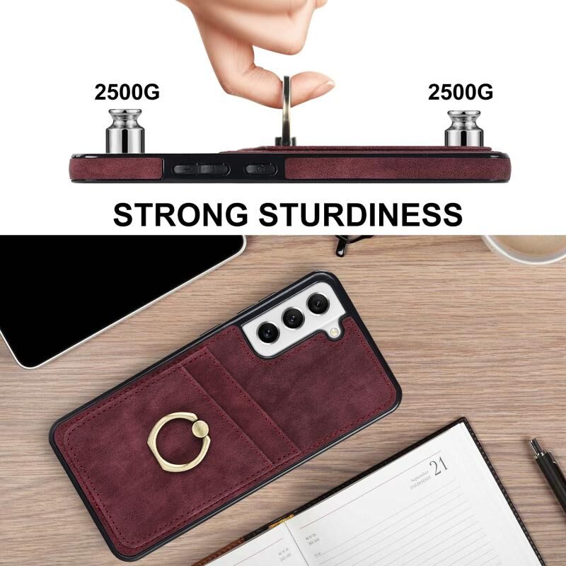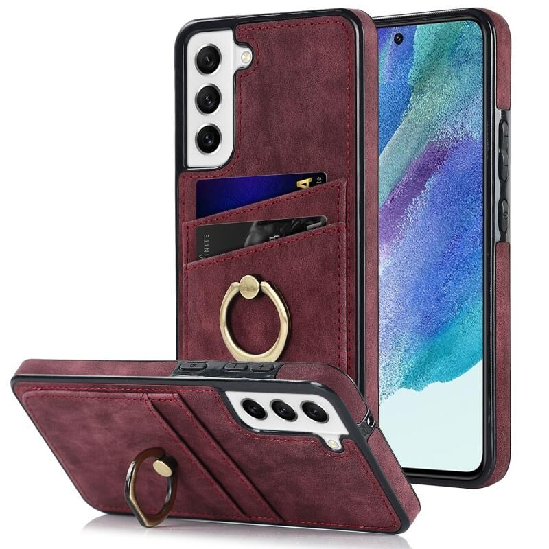 Για Samsung Galaxy S21 FE 5G Vintage Patch δερμάτινη θήκη τηλεφώνου με θήκη δαχτυλιδιού (Κόκκινο)
