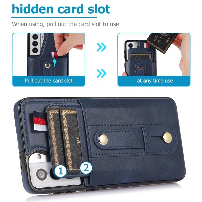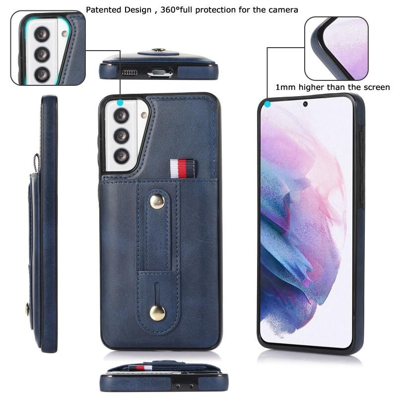 Για Samsung Galaxy S21 FE 5G Wristband Kickstand Wallet Δερμάτινη θήκη τηλεφώνου (Μπλε)