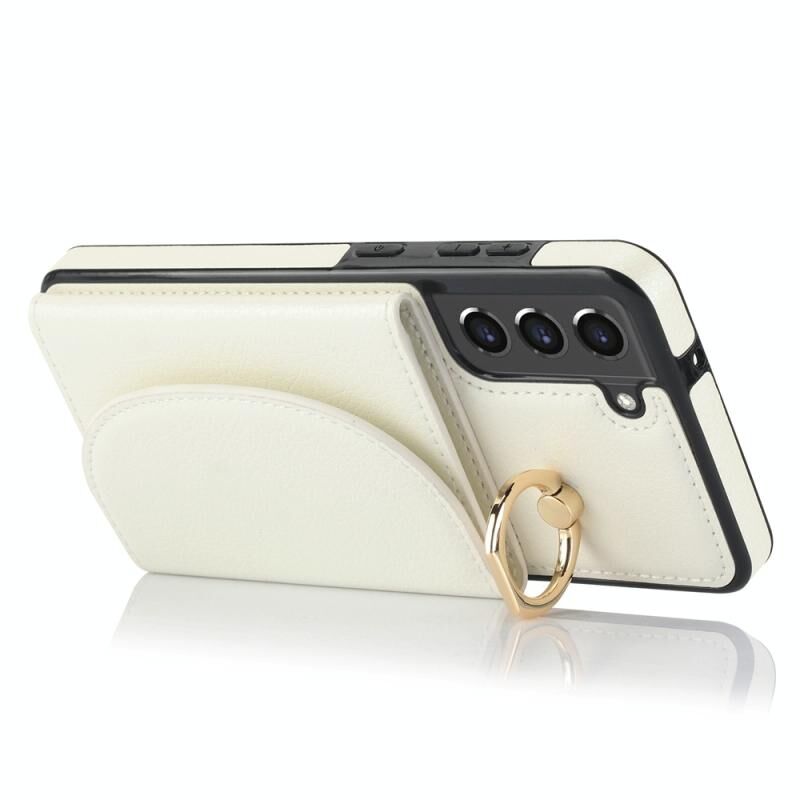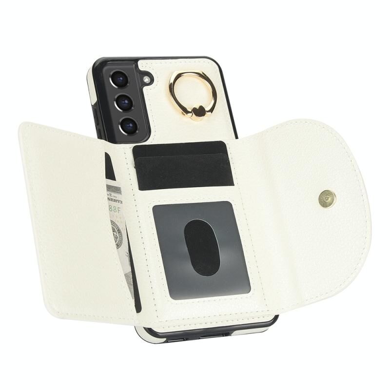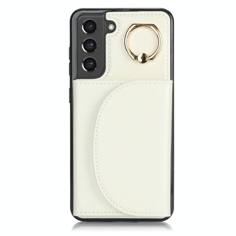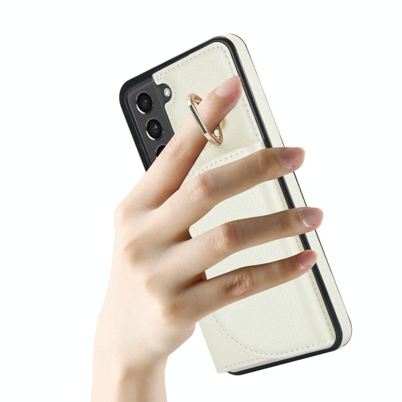 Για Samsung Galaxy S21 FE 5G YM007 Ring κάτοχος κάρτα τσάντα τσάντα δέρμα αίσθηση υπόθεση τηλεφώνου (λευκό)