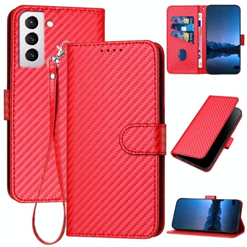 Για Samsung Galaxy S21 FE 5G YX0070 Carbon Fiber πόρπη δερμάτινη θήκη τηλεφώνου με κορδόνι (κόκκινο)