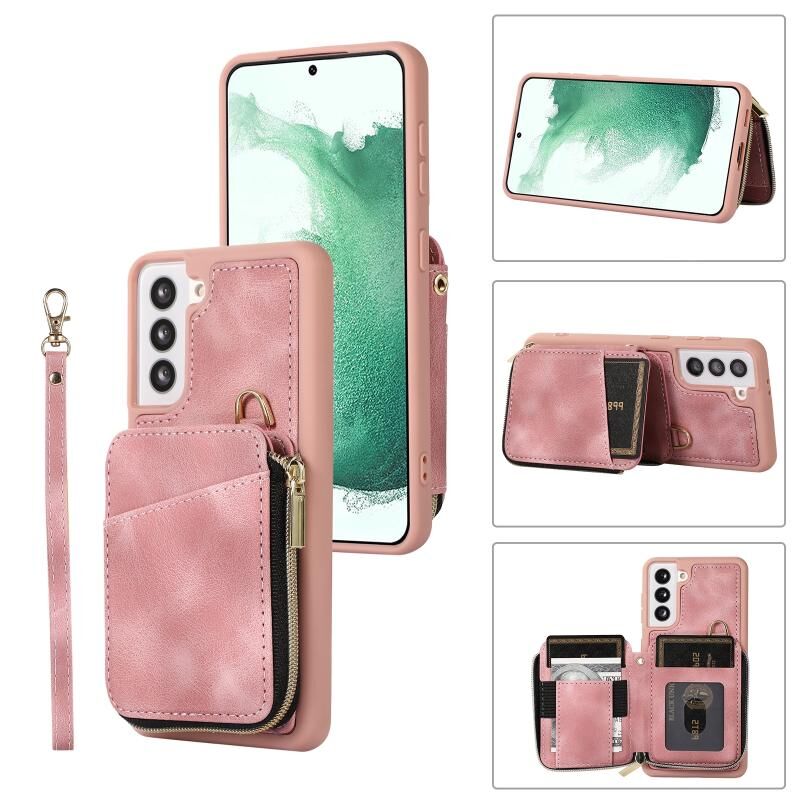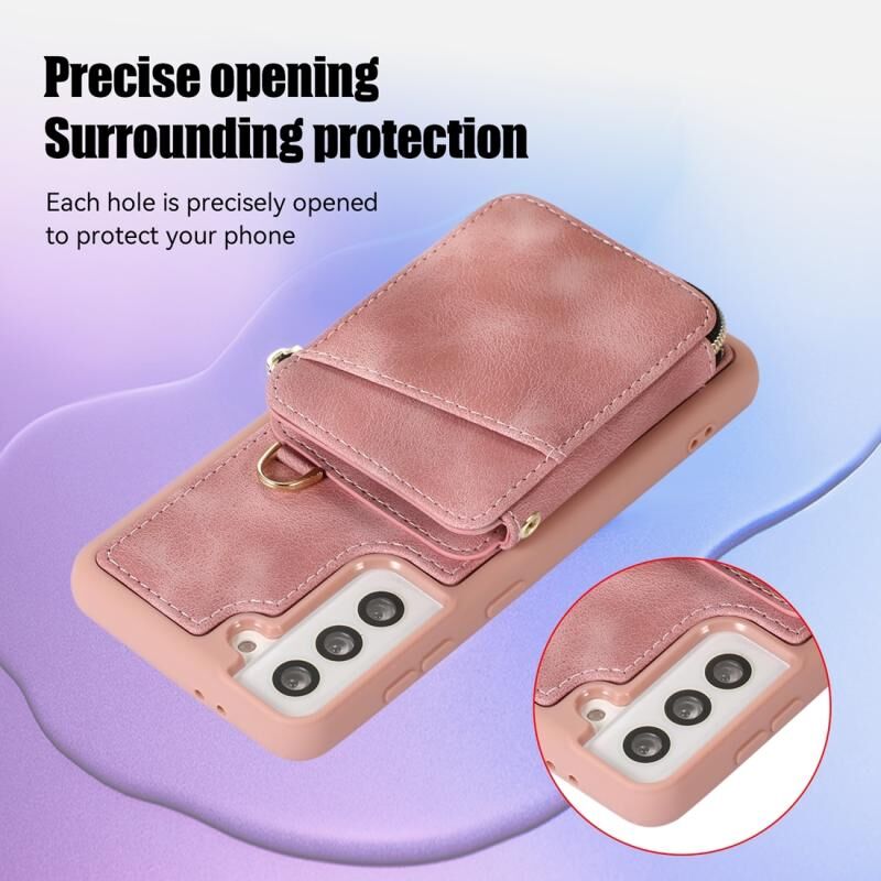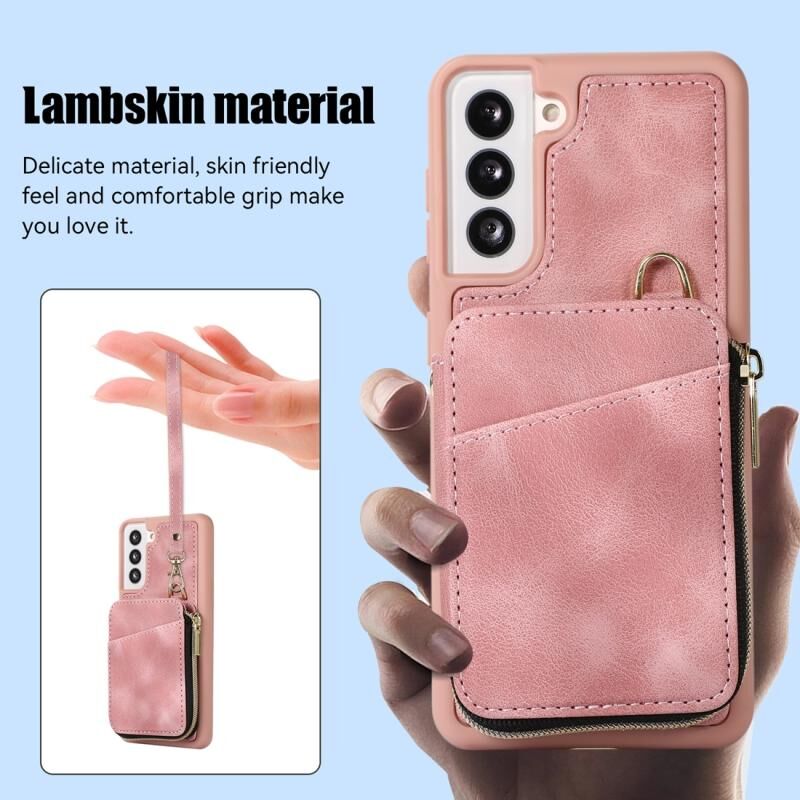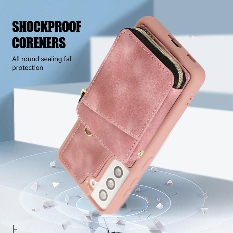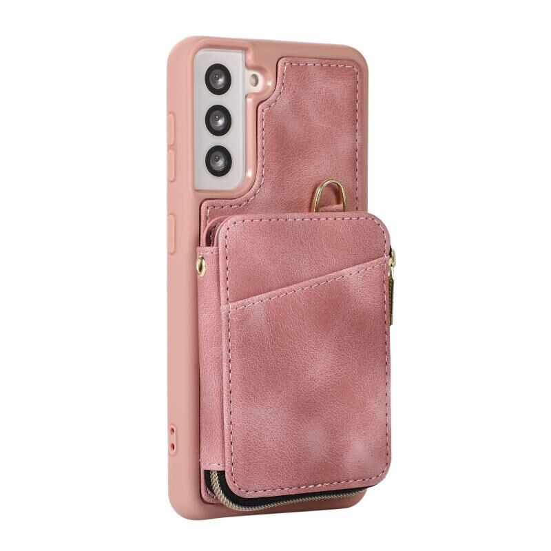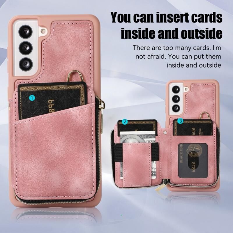 Για Samsung Galaxy S21 FE 5G φερμουάρ κάρτα τσάντα πίσω κάλυμμα θήκη τηλεφώνου (ροζ)