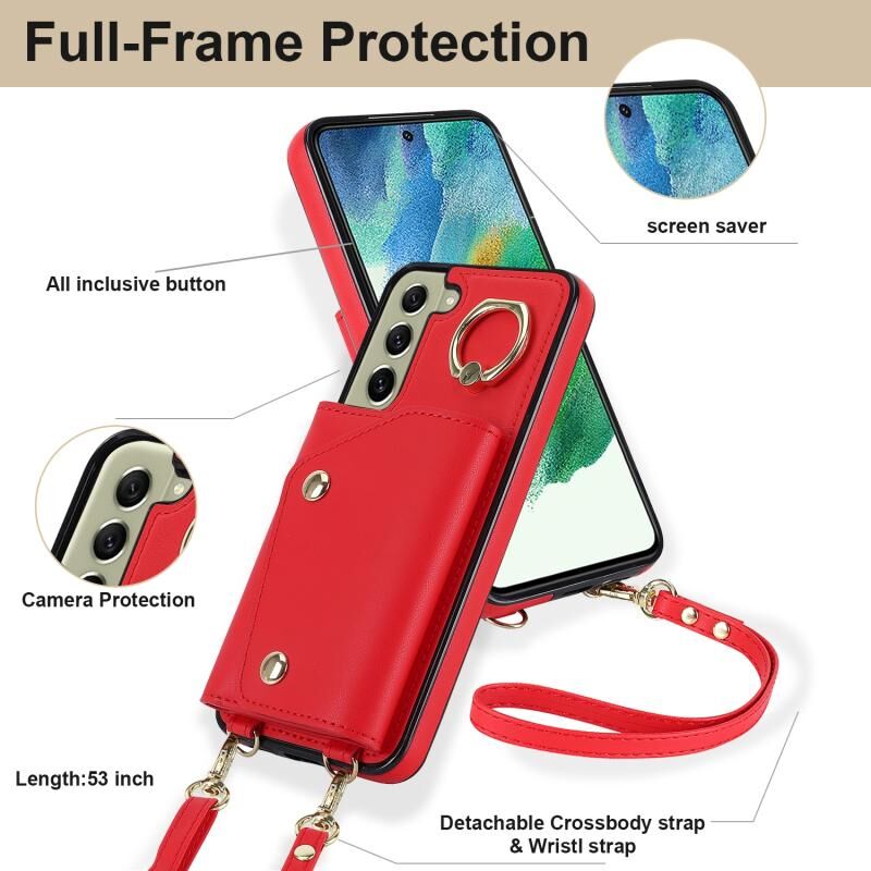 Για Samsung Galaxy S21 FE 5G φερμουάρ τσάντα κάρτα τηλέφωνο υπόθεση με διπλό κορδόνι (κόκκινο)