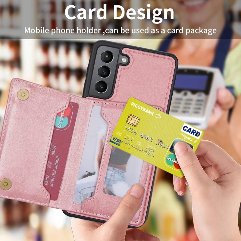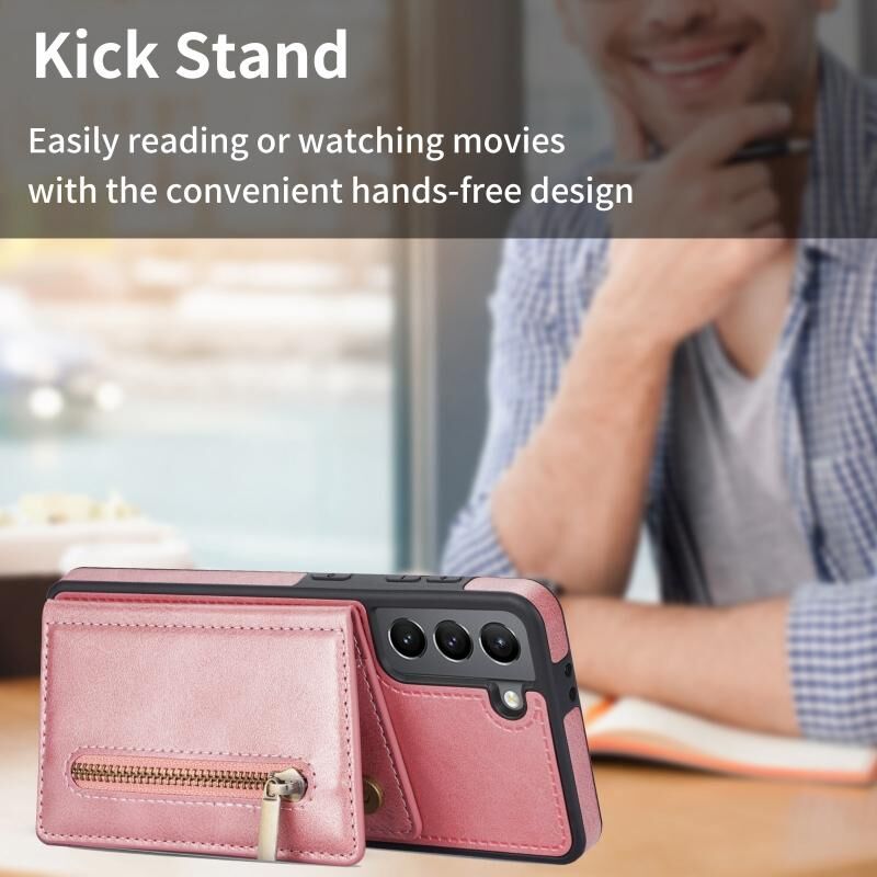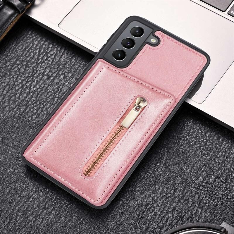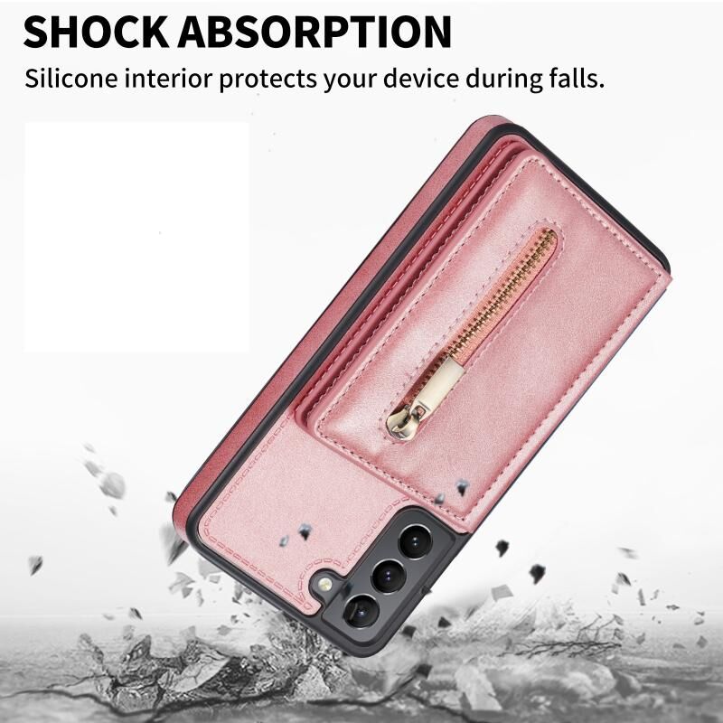 Θήκη κινητού τηλεφώνου με φερμουάρ και θήκη καρτών για Samsung Galaxy S21 FE 5G (Ροζ χρυσός)