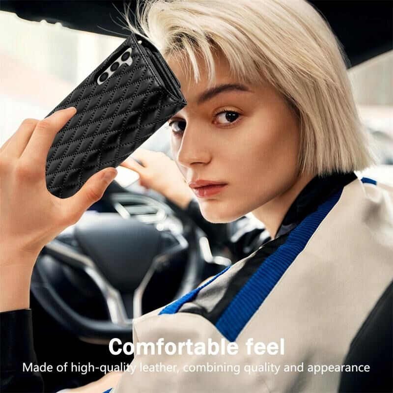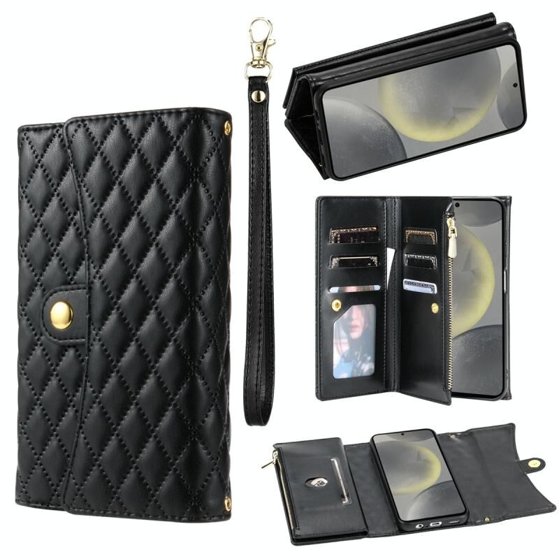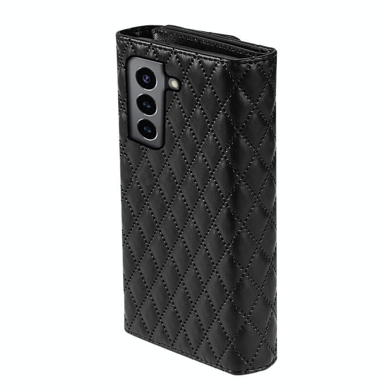 Για Samsung Galaxy S21 FE 5G φερμουάρ πολλαπλών καρτών πορτοφόλι ρομβοειδή δερμάτινη θήκη τηλεφώνου (μαύρο)