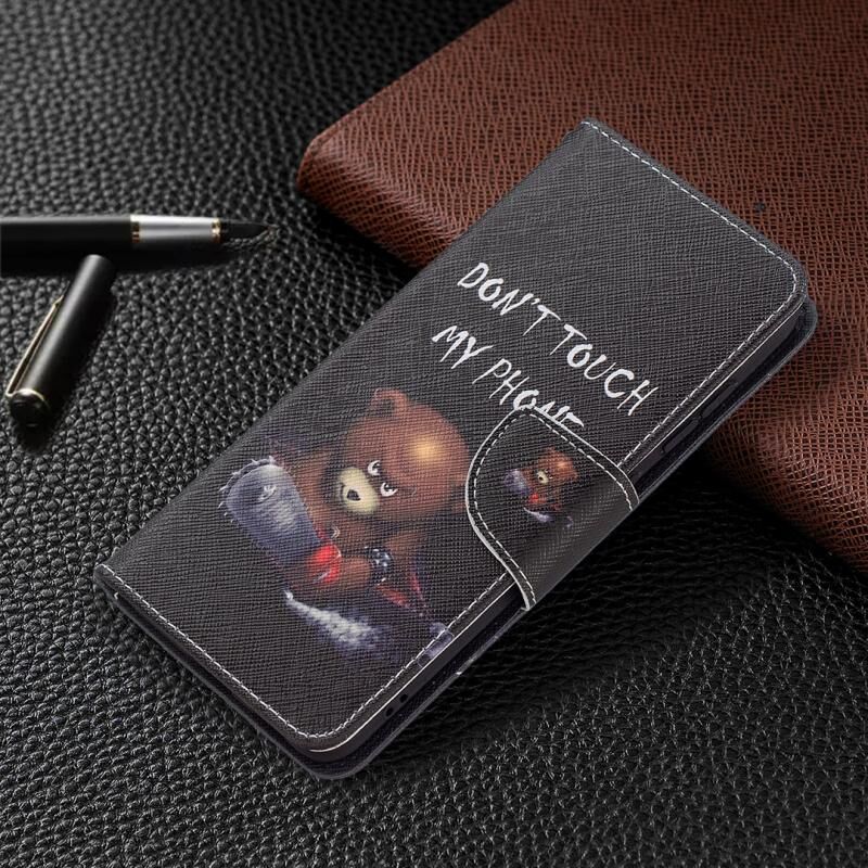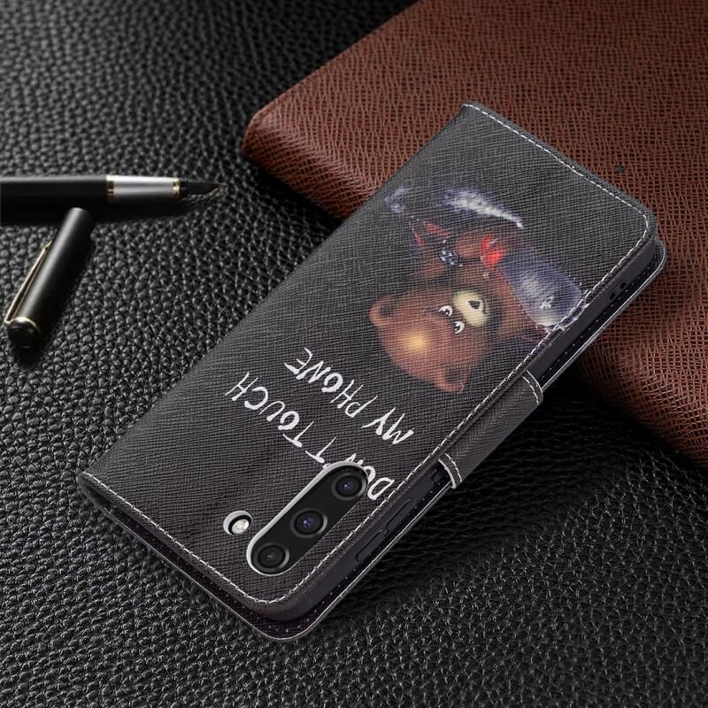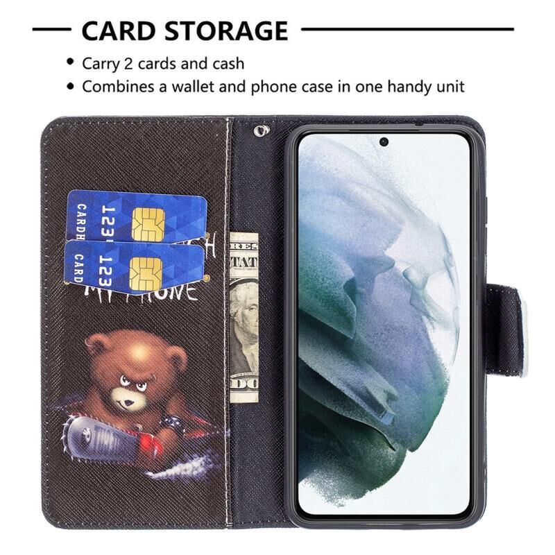 Θήκη δέρματος οριζόντιας αναδίπλωσης με σχέδιο πολύχρωμης ζωγραφικής για Samsung Galaxy S21 FE με βάση στήριξης & υποδοχές καρτών & πορτοφόλι (Αρκούδα)