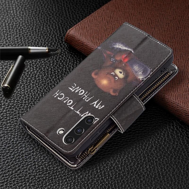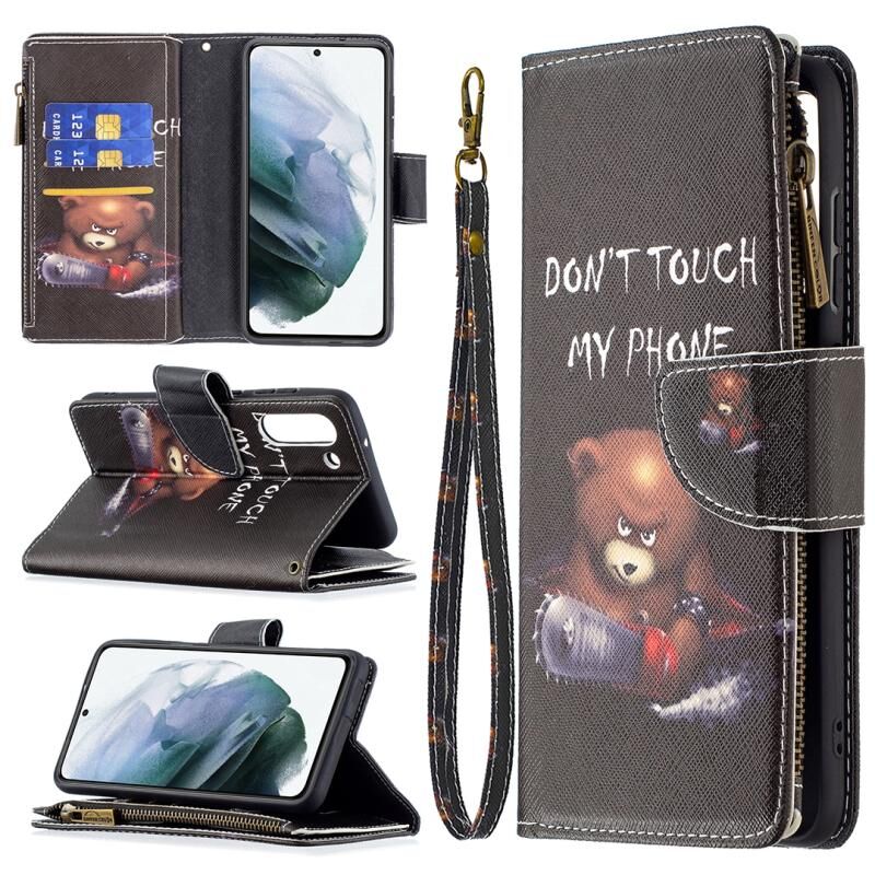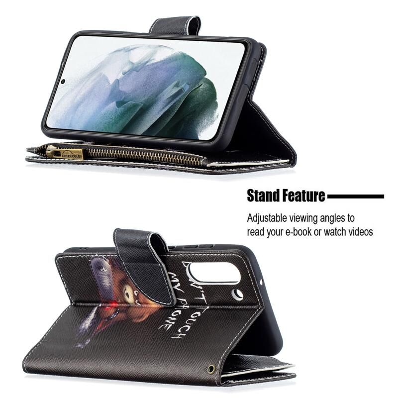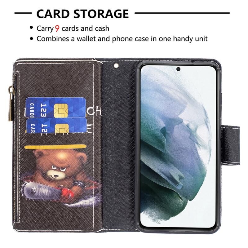 Θήκη Samsung Galaxy S21 FE Δερμάτινη Οριζόντια με Φερμουάρ, Σχέδιο Ζωγραφικής, με Θήκη & Θήκες Καρτών & Πορτοφόλι (Κόκκινο)