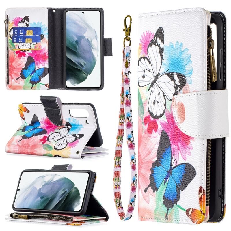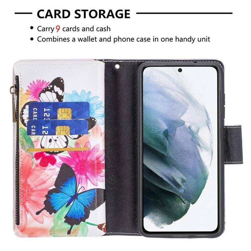 Θήκη Samsung Galaxy S21 FE Δερμάτινη Οριζόντια με Φερμουάρ, Σχέδιο Ζωγραφικής σε Χρώματα, με Θήκη & Θήκες Καρτών & Πορτοφόλι (Κόκκινο)